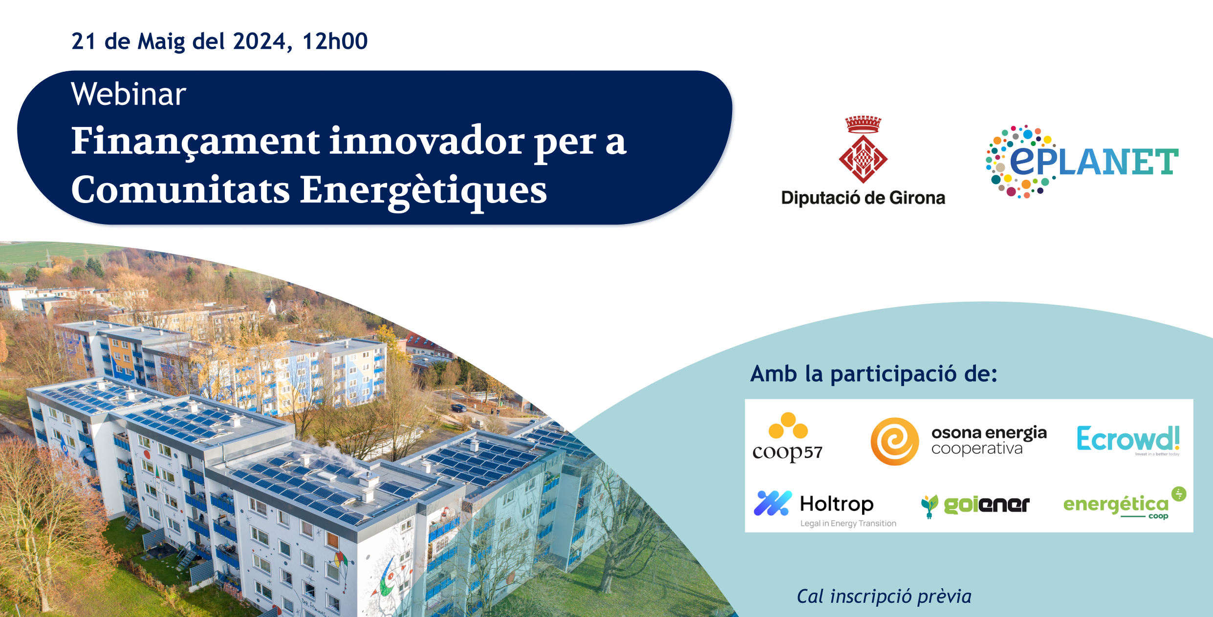 Last Tuesday 21th May, we held a webinar on Innovative Financing of Energy Communities. The event was primarily focused to Catalan entities willing to understand which are the alternatives to traditional financing for the deployment of energy communities. The webinar was divided in two sections. The first section focused on the presentation of the different existing alternatives in energy communities financing, with presentations from HOLTROP and ECROWD. The second section focused on best practices from different real examples, with presentations from GOIENER, OSONA ENERGIA Coop and ENERGETICA coop. Finally, a very interesting debate around the main barriers to the financing of energy communities and how can we overcome them took place. This event was hold in Catalan.