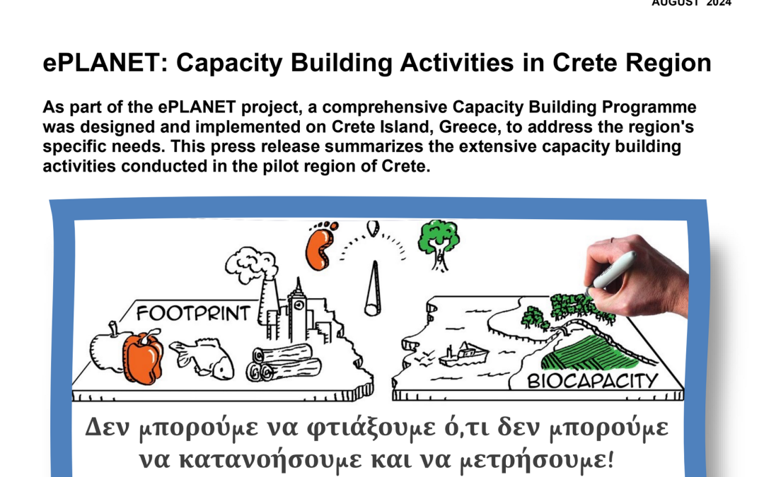 Our 15th press release analyses the different capacity building activities that ePLANET has held in Crete pilot. From dedicated webinars to tailored workshops to address the specificity and needs of Greece public authorities.
